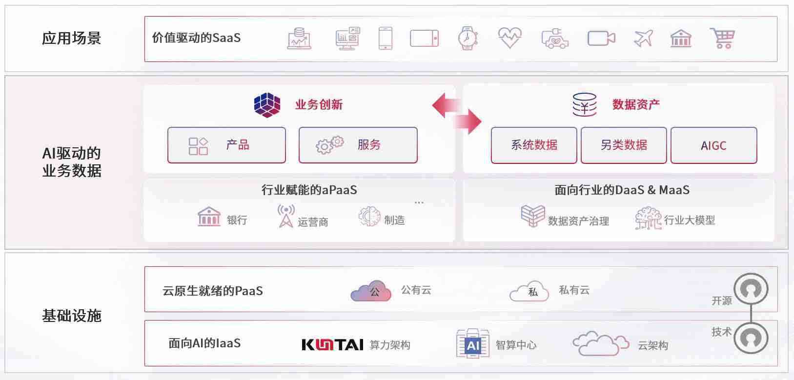 数字时代,,,围绕企业数字化转型的关键要素,,,ABPAY钱包数码开创性的提出数云融合战略和技术体系框架,,,,着力在云原生、、、、数字原生、、、AI原生和信创产业上架构产品和服务能力,,,为处在不同数字化转型阶段的快消零售、、、、汽车、、金融、、医疗、、政企、、、教育、、、运营商等行业客户提供泛在的敏捷IT能力和融合的数据驱动能力,,构建跨界融合创新的数字业务场景和新业务模式,,,助力企业级客户建立面向未来的核心能力和竞争优势,,,全面推动社会的数字化、、智能化转型升级。。。